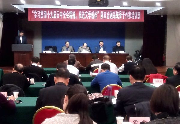 11月28日,陕西省金融作家协会第二次代表大会暨金融文学创作骨干培训在西安举行。由陕西金融文联组织的“学习贯彻十九届五中全会精神、 推进文学创作陕西金融系统骨干作家培训班”历时两天,全省金融系统百余名作家参加培训。王小渭、龚文宣到会讲话,穆涛、张艳茜、高亚平、范振斌讲解文学创作知识,杨军作工作报告,刘霆主持。