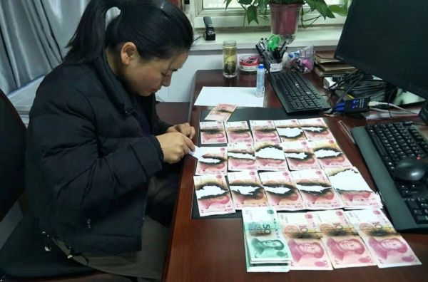 前不久,李女士的父亲偷偷地将卖药材的5100元现金藏在土炕里。适逢天气日益寒冷,其老伴不知情烧炕取暖,将藏在土炕里的5100元现金全部烧损。看到自己的血汗钱被烧了,她父亲非常心疼、气愤,大发雷霆地责骂老伴,引发家庭矛盾。事发后,李女士从外地驱车赶回老家庾岭镇石门村,并将烧损的钱拿到县城兑换,可去了几家大银行,都未能兑换。万般无奈的时候,她带着老父亲找到了丹凤农商银行普惠消保部。