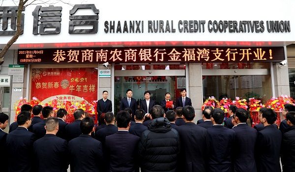 2021年1月4日,经中国银行保险监督管理委员会商洛监管局批准成立的商南农商银行金福湾支行正式开业运营。上午9时,商南农商银行党委班子成员段保江、张成健、金栓俊、杨国军及各部室、各支行负责人参加开业仪式。党委副书记、行长张成健致辞。