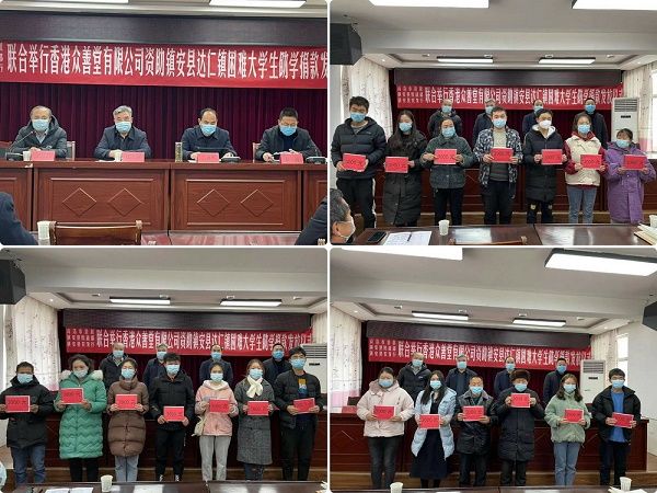 2021年1月23日上午11点,捐赠仪式在镇安县达仁镇人民政府会议室举行。出席的领导有商洛市侨联江主席(退休)、县统战部王部长、达仁镇朱镇长、农发行镇安县支行行长,参加会议的人员有20名学生及家长。现场为20名品学兼优的在校贫困大学生发放助学金每人3000元,共计60000元。