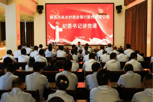 2021年5月27日,丹凤农商银行纪委书记吴相安同志围绕“学党史铭记光辉历程,见行动争做合格党员”主题,给全行80余名党员上了一堂生动的学党史专题党课。