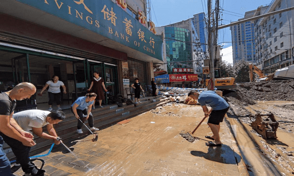 邮储银行商洛市分行党委书记、行长李杰及邮储银行镇安县支行行长周晴现场介绍了该网点受灾及恢复重建情况。由于大西沟山洪涌入县城,受暴雨及山洪影响,邮储银行镇安县支行营业区域全部进水,加上营业部地下水倒灌,机房、办公设备、自助服务机具等受损严重,对外营业暂停。灾情发生后,邮储银行商洛市分行及时响应,及时派专人深入灾区,与镇安县支行员工一起,齐心协力开展洪水清退及淤泥清理工作。目前,抢修、自救、重建、恢复工作,正在各级组织与各方力量的帮助与支持下紧张有序、有条不紊的进行。