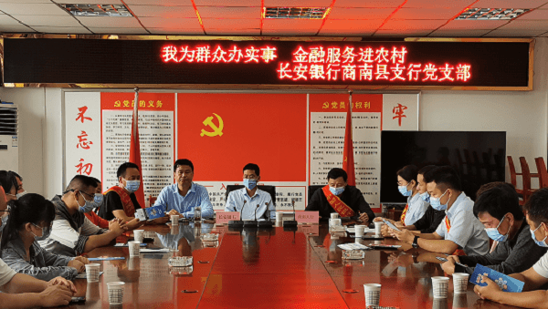 长安银行商南县支行把学习贯彻落实习近平总书记“七一”重要讲话精神作为首要政治任务,深入学习领会习总书记学史力行的重要指示,扎实推进“我为群众办实事”工作落地落实。2021年8月31日上午,该支行党支部与人民银行商南县支行党支部前往商南县东岗村委会联合开展“我为群众办实事 金融服务进乡村”活动。