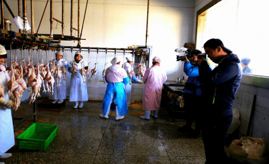 图为:拍摄组深入陕西华茂牧业公司生产车间实地拍摄