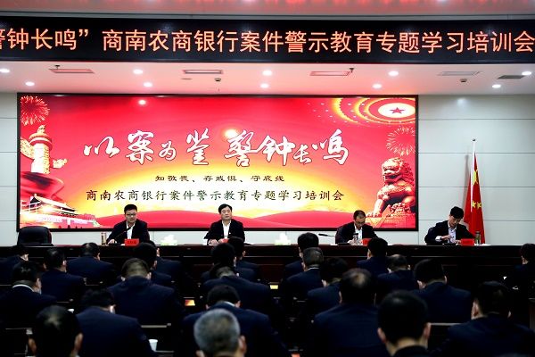 11月18日,商南农商银行组织召开“以案为鉴 警钟长鸣”案件警示教育专题学习培训会。农商银行党委班子成员、部门经理、支行行长和信贷岗位人员参加会议。会议由纪委书记、监事长金栓俊主持。