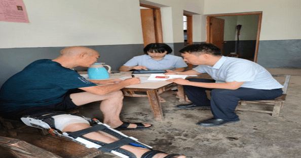 该行工作人员为摔伤了腿的退役军人储召华上门办理优待证激活业务,并留下了自己的电话,叮嘱老人需要帮助及时联系他们。储召华感动的说:“看到同村的战友已经领到了优待证,而我的腿摔伤了,现在还戴着护具,只能坐在家里干着急,多亏你们专程给我送来,要不然我还得等几个月才能领到呢。”