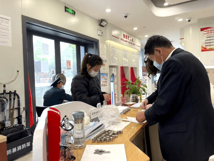 考虑到硬币数量过大,全员清点必会影响到其他客户,同时当下正是因防疫尽量减少人员聚集的特殊时期,为节省客户等候时间综合厅堂整体客流量,该行抽调厅堂其他工作人员协助大堂经理为客户清点硬币,硬币上卷着胶带纸又沾满了污垢,给清点增加了难度。清点现场,大家快速分工配合,拆硬币、辨真伪、挑污损、扎成捆、点准数,井然有序地开展清点工作。虽然工作人员的双手已经沾满了污渍,手掌漆黑,但没有一个人抱怨。经过半个多小时的清点忙碌,使原本一袋袋杂乱的硬币摇身一变成卷排列在大家面前,共计4000余枚,客户成功兑换到3900余元的现金。“实在是太麻烦你们了,这么多人来帮助我清点,真的太感谢了!”客户对该行的服务连声称赞。