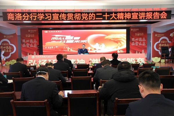 12月26日下午,农行商洛分行举办学习宣传贯彻党的二十大精神宣讲报告会,党委书记、行长唐朝旭作宣讲报告,其他班子成员参加。