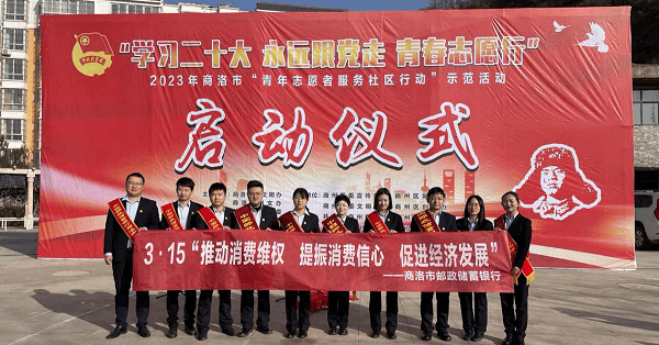 3月3日,在“3.15”即将来临之际,邮储银行商洛市分行结合“青年志愿者服务进社区行动”组织开展了金融知识进社区活动。该行20余名员工前往商洛市南秦社区开展主题为“推动消费维权 提振消费信心 促进经济发展”金融知识宣传活动。