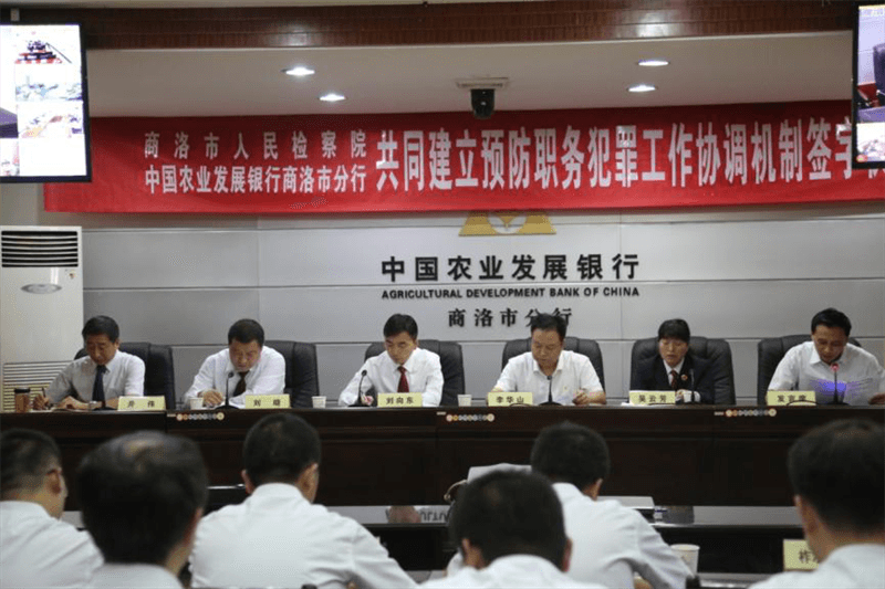 5月4日下午,农发行商洛市分行与商洛市人民检察院在农发行五楼会议室联合举办了《关于共同建立预防职务犯罪工作协调机制的意见》签字仪式。签约仪式在农发行商洛市分行机关设立主会场,各县支行干部职工通过网络视频进行了收看。