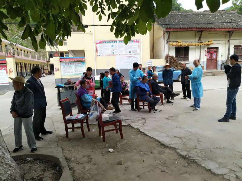 随行到扶贫村的商洛银监分局团委书记李茜与丹凤农商银行团委干部程鹏博、陈平英在花园村为村民们义务理发,与前来理发的大叔大妈叙家常,个个喜笑颜开,人群中笑声阵阵,受到当地群众的广泛好评。