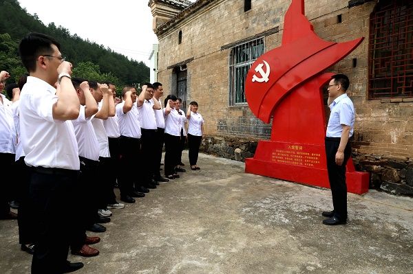 6月20日,该行机关全体党员前往商南县最早的革命根据地之一,刘家花屋区苏维埃政府革命遗址,现场认真聆听讲解、追忆1934年红军第五次反围剿失败后战略大转移发生在这里的革命故事,缅怀革命先烈,为红色赤卫队艰苦豪壮的创业经历所动容。面对党旗,全体党员重温入党誓词,更加坚定了初心使命,誓要把一心为民、赓续奋斗的革命精神传承好、发扬好。