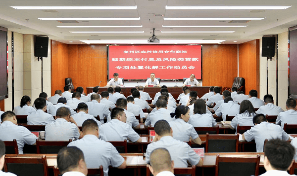 为深入贯彻落实商洛农合机构信贷资产风险防范化解工作会议精神,持续打好化解信贷资产风险攻坚战,统筹安排部署延期还本付息及风险类贷款专项处置化解工作,8月10日,商州区信用联社召开了延期还本付息及风险类贷款专项处置化解工作动员会。该联社经营班子,中层管理人员,风险管理部、特殊资产管理部全体员工,部分城区网点客户经理参加了会议。会议由党委委员、副主任龙波主持。