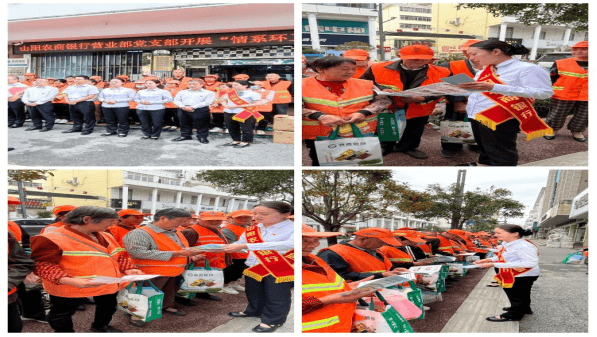 9月21日上午,山阳农商银行营业部党支部围绕“遵守社会公德 维护公共卫生 构建和谐社会”组织开展了“情系环卫工 双节送关爱”活动,现场为辛苦劳作的环卫工人送上月饼、毛巾、洗洁精、水、手套、口罩等慰问品和节日的祝福。并在活动期间,通过悬挂横幅、发放宣传折页、摆放宣传展板、现场问答等形式,为环卫工人朋友们宣讲存款保险、反洗钱、防范非法集资、个人信息保护、金融消费者八项权益等相关金融知识。同时,“面对面”讲解防范电信网络诈骗案例、反假币知识以及网络借贷的危害等,使广大消费者充分认识到消费者权益保护的重要性,引导群众树立正确的金融消费理念,切实增强防骗意识和自我保护能力,全心全意为县域民众提供优质的金融服务,践行“我为群众办实事”初心使命。