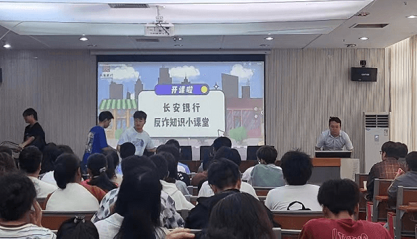 长安银行工作人员和高新公安局反诈中心民警精心准备了生动形象的演示文稿和宣传折页,以学习讲座的方式为在校师生宣讲了《反电信诈骗法》,讲解了常见的电信诈骗案例、犯罪分子惯用的诈骗技巧和目前新型的家长群收费、淘宝抖音刷单等诈骗形式,警示大家“不轻信、不上当、不转账”不轻易加陌生人微信、不轻信广告宣传,不给犯罪分子可乘之机,避免上当受骗和财产损失。如不幸遇到电信诈骗,要第一时间选择报警,向警方提供被骗经过、聊天记录等证据,配合民警做好报案笔录,尽可能挽回损失。