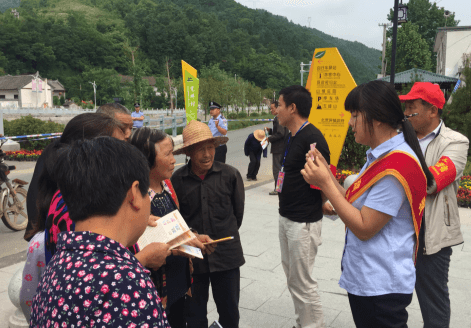 图为:柞水农商行员工利用下班时间走向街头向乘凉的群众散发宣传单