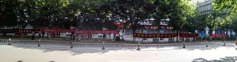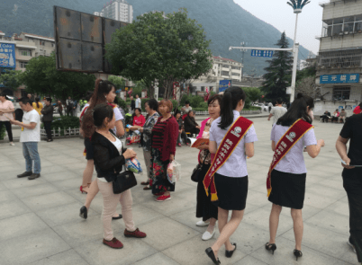 图为:商洛银行业协会组织各理事单位在城区繁华地段开启仪式