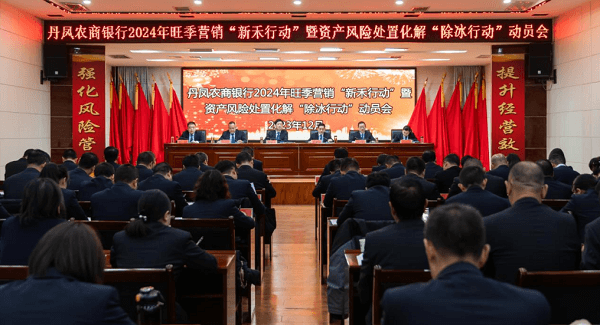 为深入贯彻落实省联社、商洛审计中心2024年旺季营销“新禾行动”暨资产风险处置化解“除冰行动”动员会会议精神,统筹部署2024年旺季营销工作。12月11日,丹凤农商银行在职工培训中心召开2024年旺季营销“新禾行动”暨资产风险处置化解“除冰行动”动员会。该行党委班子成员、各网点负责人及机关全体职工90余人参加会议。会议由该行党委委员、副行长张波主持。