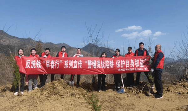 植树活动结束后,商州区信用联社志愿者队员们还组织开展了“警惕洗钱陷阱 保护自身权益”反洗钱“早春行”宣传活动。他们通过拉横幅、送折页等方式,向参与活动的同志们宣传反洗钱和反诈金融知识。