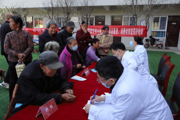 在上河村,邮储银行商洛市分行联合市中心医院开展公益义诊活动,为上河村村民提供一站式健康管理及金融服务,邮爱公益志愿者一边引导村民前往义诊区,一边向排队等候的村民宣传金融常识。