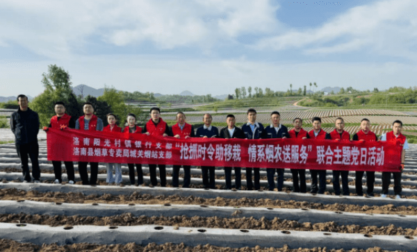 2024年4月25日,洛南阳光村镇银行党支部与洛南县烟草专卖局城关烟站支部联合开展“抢抓时令助移栽 情系烟农送服务”主题党日活动,以此促进党纪学习教育活动走深走实。
