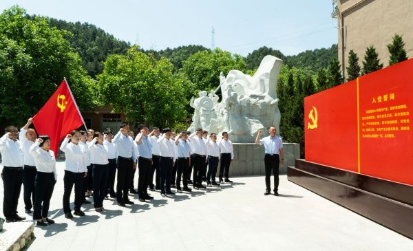 在留仙坪会师广场,全体党员认真聆听工作人员讲解解放战争时期中原军区北路突围部队和陕南游击队胜利会师的革命历史。在鲜红的党旗下,省联社安全保卫部党支部书记、总经理高羽同志带领全体党员干部重温了入党誓词,回顾初心使命,凝聚奋进力量。