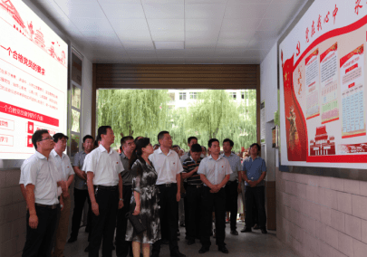 图为:观摩团一行观看文化墙