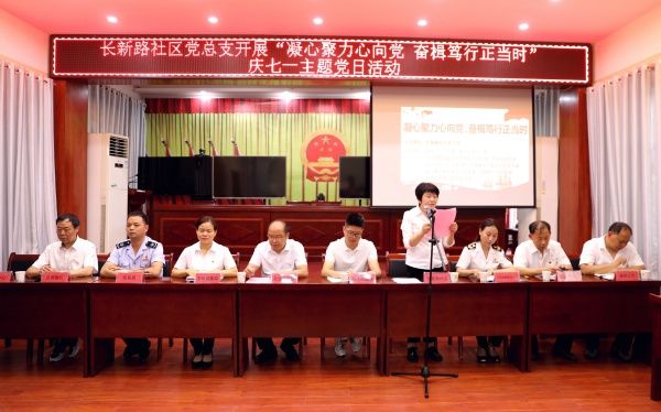 8时30分,共驻共建单位商南县委社会工作部、城关街道党工委、县市场质量监督管理局机关党支部、县税务局党委、县妇计中心党支部、县卫生健康综合执法大队党支部、县交通运输发展中心党支部、县路桥公司党支部、商南农商银行机关党支部,带领党员干部欢聚一堂。长新路社区党总支书记叶彩云致辞,并带领全体党员重温入党誓词,讲题为“正心正行,做一名合格共产党员”主题党课。