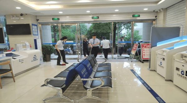 演练中,严格按照防汛应急演练方案,模拟了突降暴雨、洪水泛滥的场景。汛情发生第一时间,支行迅速启动应急预案,主要负责人立即向分行安全保卫部门上报网点汛情,支行员工紧密配合、有条不紊、各司其职。其中,营运主管指挥网点员工关闭电源主开关,电源插座,高、低柜柜员暂停办理业务,并同步做好向客户解释;客户引导组成员迅速疏散客户,组织前往指定区域紧急避险;高柜服务区成员立即将现金、重要物品等封箱上锁,并转移至相对安全区域,做好对重要物品的看护工作;后勤保障组成员在确保安全的情况下及时对网点积水进行引流排出、主动消除险情。期间,支行班子成员现场指挥、协调到位,各小组紧密配合,关键节点环环相扣,充分发挥了团队协作精神,确保各项抢险措施得到有效落实。
