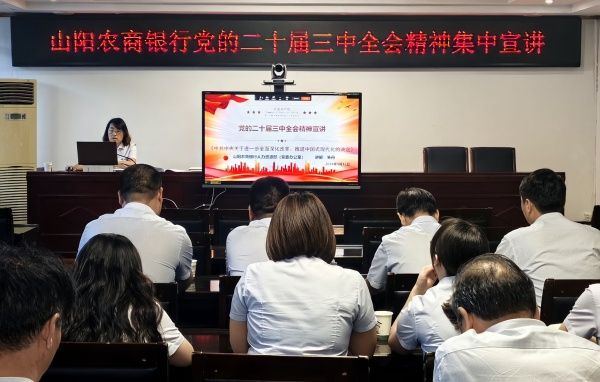 为认真贯彻落实党的二十届三中全会精神,深入推进“农信党旗红”党建品牌建设,大力实施“党建引领”工程,为山阳农商银行各项业务高质量发展提供坚强政治保障和不竭动力,9月12日,山阳农商银行党委开展了党的二十届三中全会精神集中宣讲及“农信党旗红”党建实操知识培训。参加培训的有全体党员、积极分子等共210余人。培训采用“钉钉”线上+现场线下相结合的方式进行,党委办公室党建专干朱丹同志全程授课。