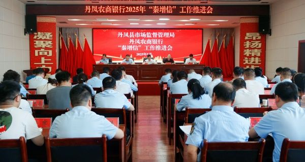 5月20日下午,丹凤农商银行与丹凤县市场监督管理局联合召开“秦增信”业务现场推进会,双方签署战略合作协议,现场为20户个体工商户授信158万元。丹凤县市场监督管理局副局长刘亚林、信用监管股股长赵岭,丹凤农商银行行长菊建社、副行长张波、王鹏,各镇办市监所所长、农商行各网点负责人、个体工商户代表及业务管理部全体人员共计60余人参加,会议由丹凤农商银行副行长张波主持。