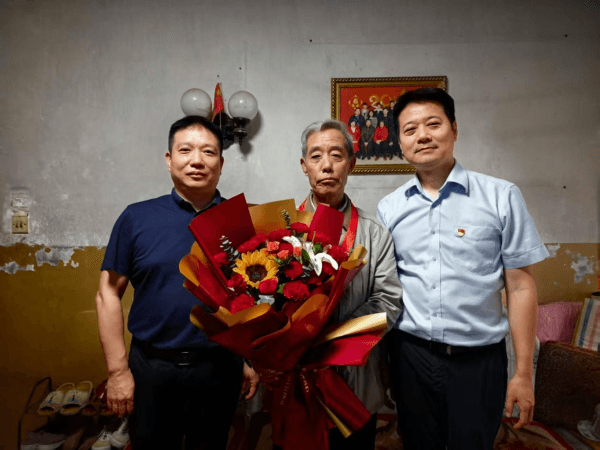 为弘扬优良传统,强化使命担当,6月25日,建行商洛分行党委书记带队上门慰问该行党龄超过50年的部分老党员,现场为他们颁发“光荣在党50年”纪念章,并送上鲜花,向老党员们致以崇高敬意。