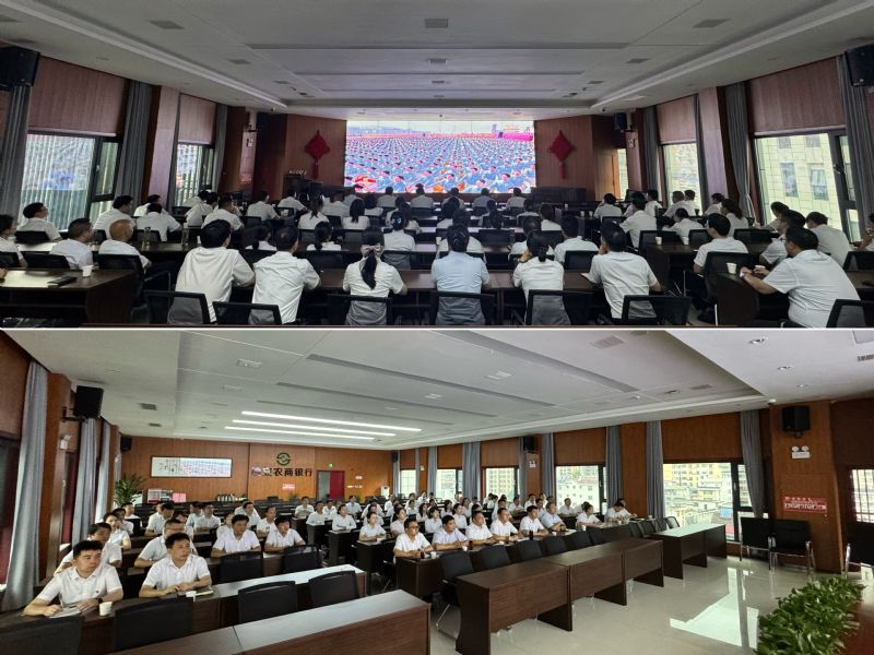 9月3日上午,纪念中国人民抗日战争暨世界反法西斯战争胜利80周年大会在北京天安门广场隆重举行。镇安农商银行组织机关全体干部职工集中收看直播盛况,同时组织全行各网点员工在网点同步收看。