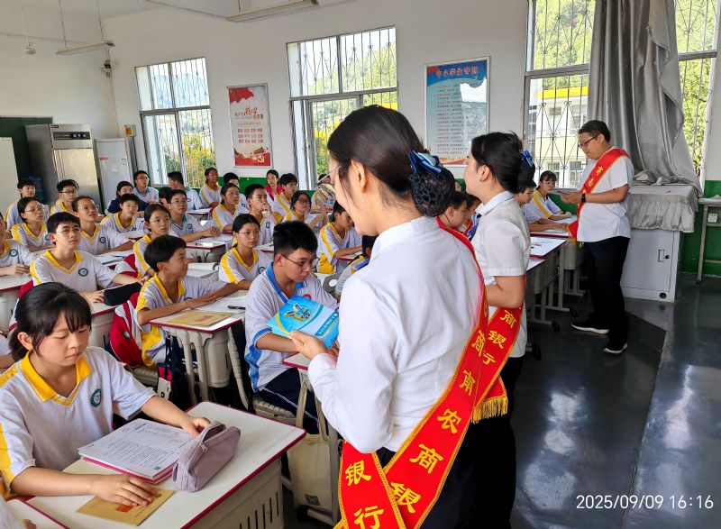 9月9日,商南农商银行富水支行一行职工走进富水镇初级中学,开展“反假第一课进乡村校园”宣传活动,为师生带来一堂别开生面的反假币知识课。旨在进一步普及反假币知识,提升乡村青少年识假防假能力。