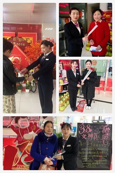 工农路支行领导班子带着鲜花和巧克力慰问女职工