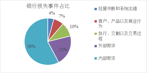 通常,在银行所面临的各类风险中,操作风险的内涵更为广泛,也相对更为复杂。而在操作风险的各种形成原因中又以人为因素为主。回顾近年金融业发展情况,我们会发现风险事件频频发生,而商业银行则是风险事件的重灾区。如图1和表1数据所示,在银行风险事件中,内外部欺诈事件占了绝大比重,特别是内部欺诈,更是达到了57.75%,这说明了金融风险的形成与金融机构内部业务操作者及领导者有着直接必然的联系。