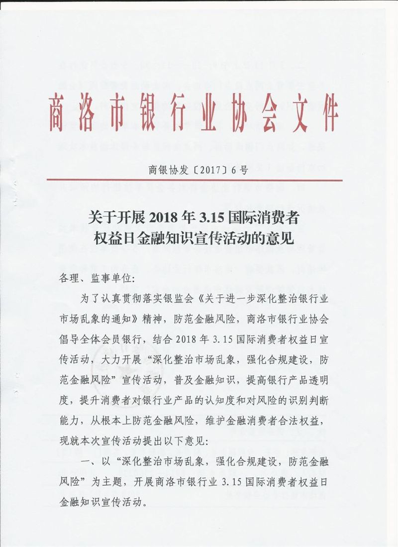 关于开展2018年3.15国际消费者权益日金融知识宣传活动的意见