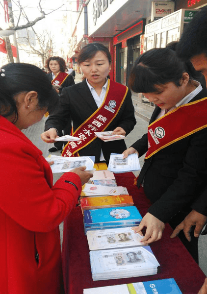 图为:柞水农商行宣传活动“反假币”主题突出颇受欢迎