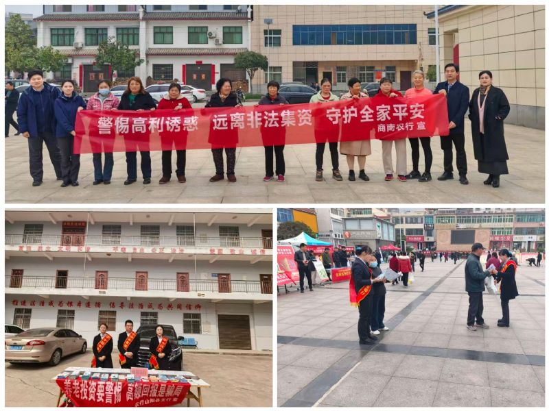 丹凤、镇安、柞水支行分别联合当地公安机关、监管部门,在县域广场开展集中宣传,通过设立咨询台、发放折页、以案说险等形式,向市民揭露非法集资套路,扩大宣传覆盖面。