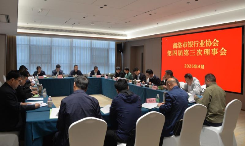 2026年4月8日,商洛市银行业协会第四届第三次理事会顺利召开。会议由协会专职副会长孙浩鸿主持。会长赵晓鹏、秘书长吕镇芳参加会议并向会议提交相关议案。15位理事代表参加会议,5位监事代表全程监督。