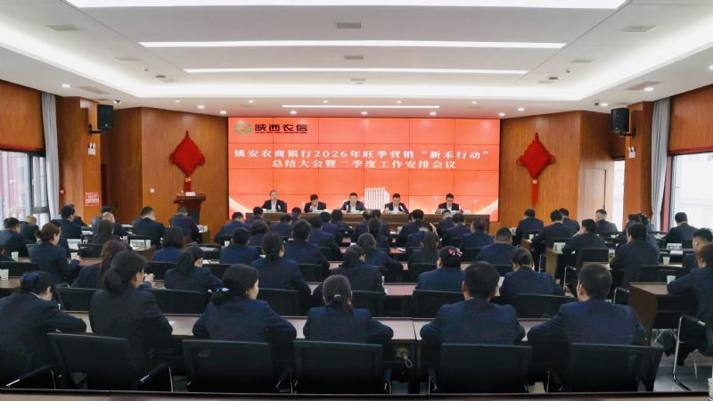 为复盘总结一季度工作,安排部署当前主要任务,4月15日,镇安农商银行召开2026年旺季营销“新禾行动”总结暨二季度工作安排部署会。行领导班子、机关中层人员、各网点正副职及运营主管、城内网点客户经理参加会议。
