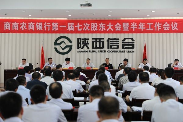 近日,商南农商银行一届七次股东大会顺利召开。陕西省信用联社商洛审计中心综合科科长朱国瑞,商洛银监局商南监管办主任张建宏、监管三科副科长陈鹏,商南农商银行党委领导班子段保江、张成健、朱仁忠、汪全宏、吴相安,及股东百余人,齐聚商南农商银行九楼会议室,共谋农商银行发展大计。会议由商南农商银行党委书记、董事长段保江同志主持。