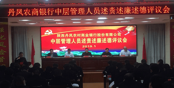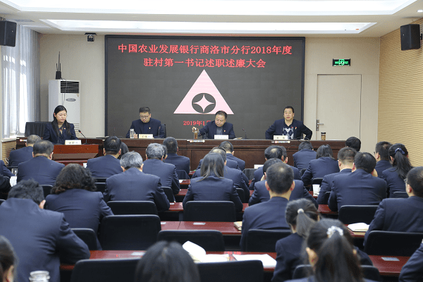 1月17日农发行商洛市分行召开干部述职大会。大会分为基层党支部抓党建述职评议、干部年度考核述职、驻村第一书记述职述廉大会三个部分,34名干部对一年来履职情况进行了现场述职。除支部书记、中层干部履行年度述职外,该行为突出打赢脱贫攻坚战的时代氛围,党委决定通过驻村第一书记进行述职考核的方式,逐步夯实驻村帮扶的责任,机关及辖内共计4名驻扶贫村第一书记对全年驻村帮扶的履职情况向分行党委和全体干部职工进行了汇报。