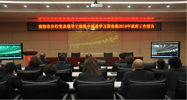 邮政银行商洛市分行党员领导干部集中观看学习 国务院2019年政府工作报告