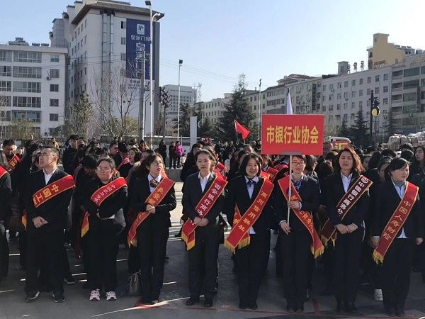 3月12日上午,商洛市人民政府在商州区望江楼广场隆重举行3.15活动暨百日维权专项执法行动启动仪式,参加仪式的有商洛市、商州区消费者权益保护工作联席会议成员单位、驻商各企业代表等组成代表队参加。商洛市银行业协会组织了商州区9家银行机构组成百人方队参与此次动。出席这次启动仪式的有市政府副市长刘伟、市政府督查室主任贾孝东等相关领导。