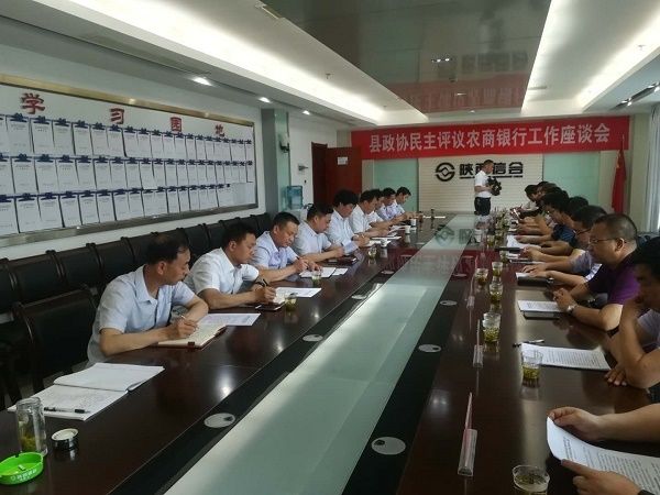 会上,商南农商行党委副书记、行长张成健对农商银行近年来业务发展及行风建设工作汇报。民主评议监督人员和服务对象进行评议,商南县7名政协委员结合各自调研情况,对商南农商行进行评议,委员们对农商行改进金融服务、转变工作作风、助力脱贫攻坚、支持县域经济发展给予高度评价,认为商南农商行用占全县金融机构44%存款支撑商南县70%的贷款市场,真正体现支持县域经济发展的主力军作用,对工作中存在的不足进行交流,希望农商行加强人才队伍建设、完善基层网点配置、加快产品创新、改进服务设施、密切镇村联系。邀请的服务对象对农商行的不懈支持表示感谢,建议农商行加快承兑汇票、理财等业务的创新,为小微企业和民营经济提供更好的支持。