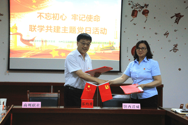 6月26日,商州区信用联社机关党支部联合陕西君威农贸集团党支部等共30余人开展了别开生面的“不忘初心、牢记使命”联学共建主题党日活动。全体党员干部职工集体赴商州区北宽坪红色教育基地,隆重举行了升国旗仪式,观看了革命影片“红色记忆”,认真聆听北宽坪镇厚重的红色历史,重温老一辈无产阶级革命家的峥嵘岁月和浴血奋战历程。在活动当日,商州区联社以此次活动为契机,全体党员干部职工在陕西君威农贸公司会议室召开了银企座谈会,与君威农贸集团成功签订了贷款合作协议。