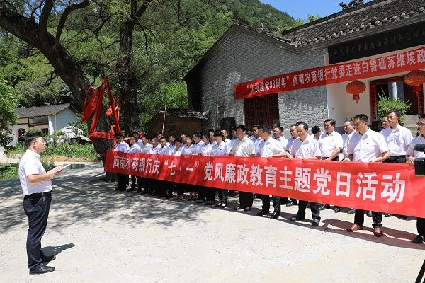 商南农商银行党委55名党员干部职工前往商南县白鲁础苏维埃政府遗址,踏访革命先辈足迹,回顾党的光辉历程,教育广大党员干部职工继承和发扬中国共产党优良传统,充分发挥共产党员先锋模范作用,自觉做廉洁从政的组织者、推动者和践行者,坚定不移推进党风廉政建设和反腐败斗争,树立风清气正行业新形象,为促进商南农商银行健康发展提供坚强政治和纪律保证。