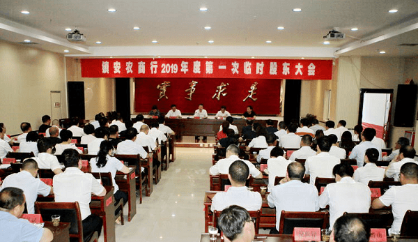镇安农商银行2019年度第一次临时股东大会由商洛审计中心一科王全曹科长主持,大会审议了通过了《关于周高平同志辞去镇安农商银行董事会董事的议案》、《关于张季同志辞去镇安农商银行董事会董事的议案》,选举邓大海同志为镇安农商银行董事会董事长,聘任李珺同志为镇安农商银行副行长。