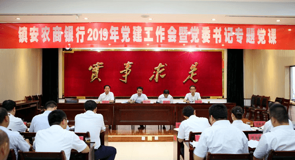 为进一步改会风、转作风,7月11日,镇安农商银行采取“四会”套开的形式,相继召开了2019年度第一次临时股东大会、2019年上半年业务经营分析会、第二个纪律教育学习宣传月活动动员大会和党建工作会。商洛审计中心一科王全曹科长,商行领导班子成员,各部门、各网点负责人,客户经理、会计主管等100余人参加会议。